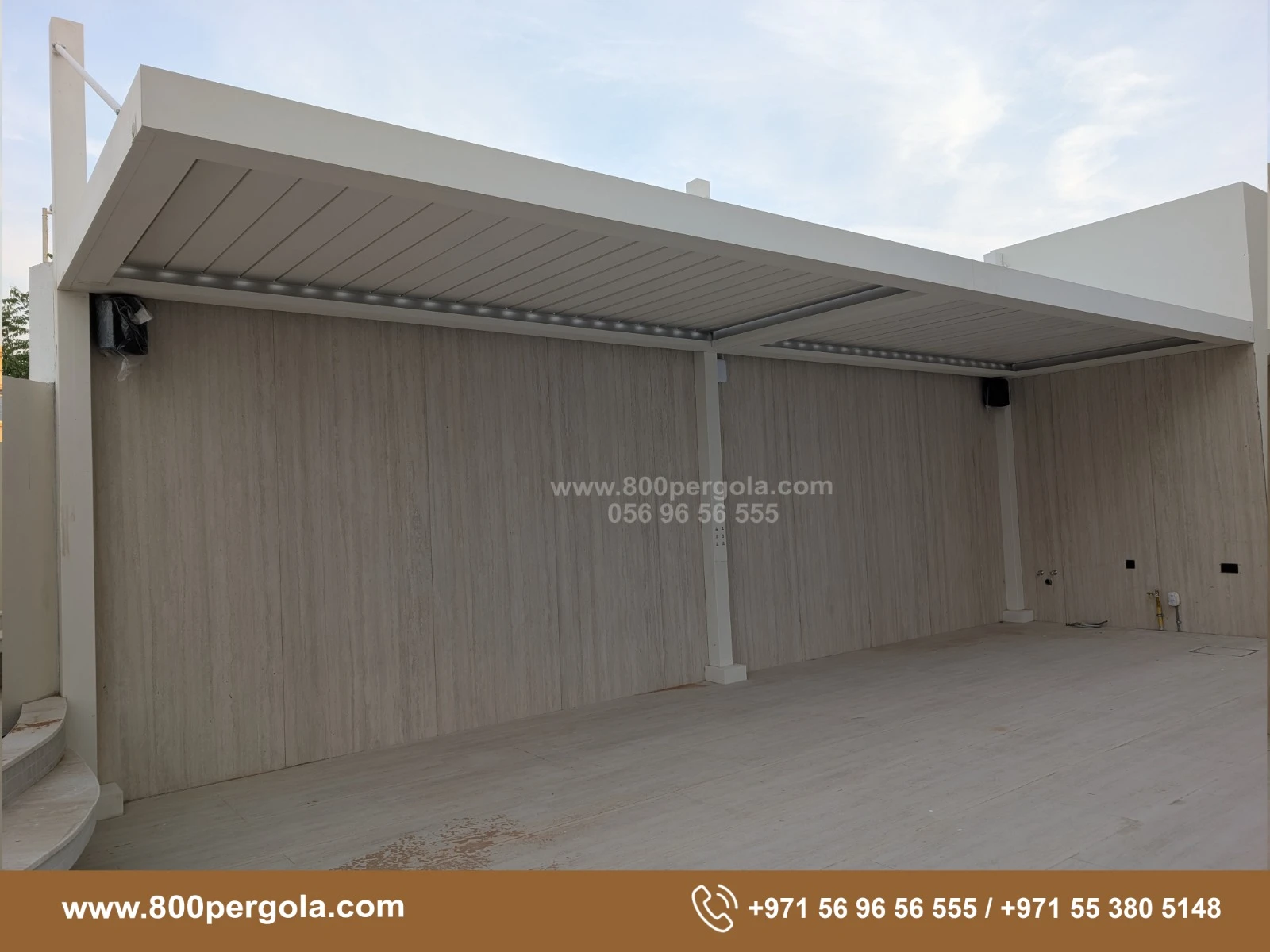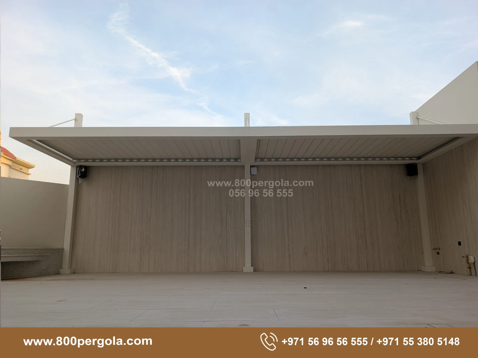 Looking to beautify your backyard & install an elegant Motorised Pergola in your backyard. Call +971-56-96-56-555 to book a free consultation.