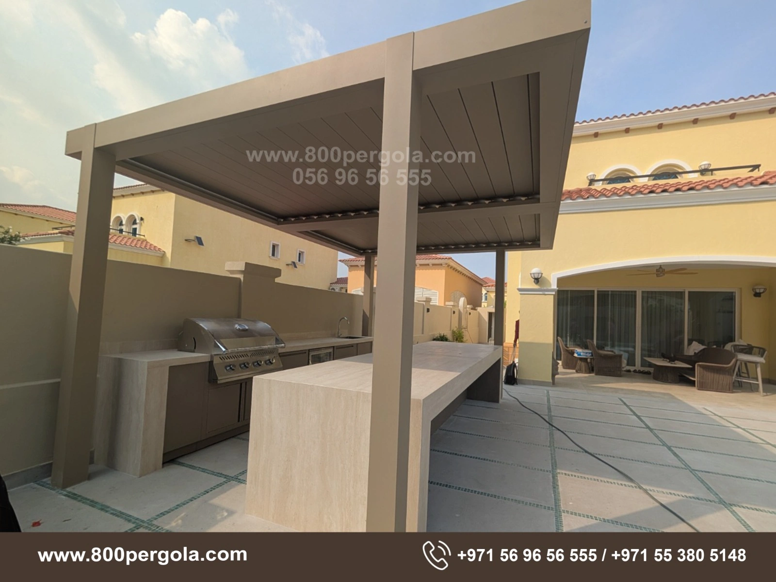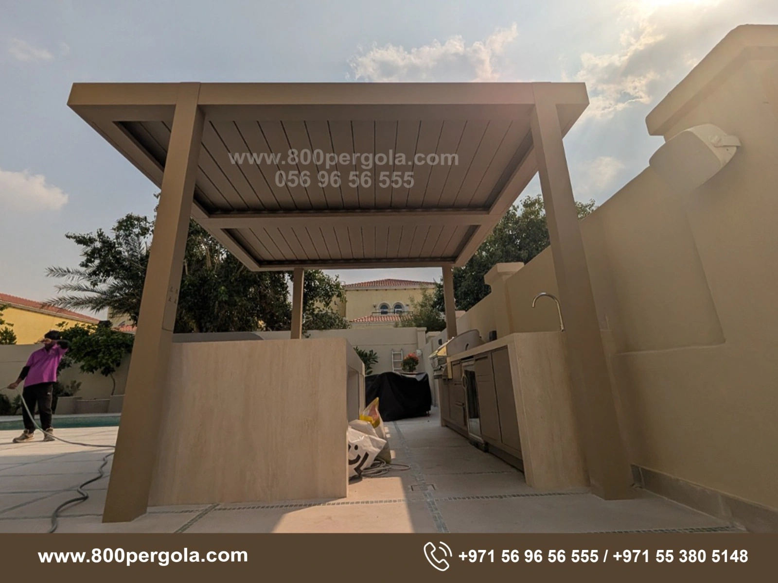 Looking to beautify your backyard & install an elegant Motorised Pergola in your backyard. Call +971-56-96-56-555 to book a free consultation.