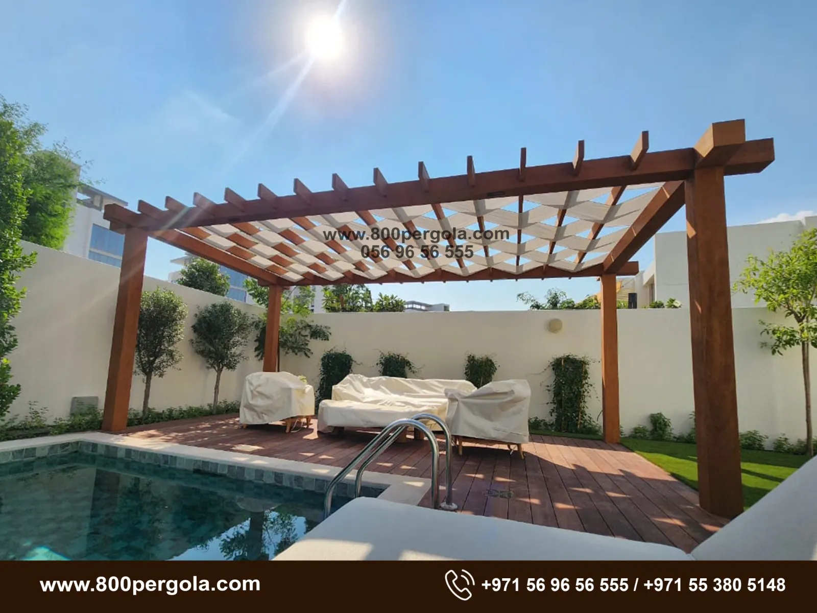 Looking to beautify your backyard & install an elegant Motorised Pergola in your backyard. Call +971-56-96-56-555 to book a free consultation.